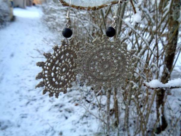 Kuvassa jäsenemme Mia Vuorisen virkatut korvakorut